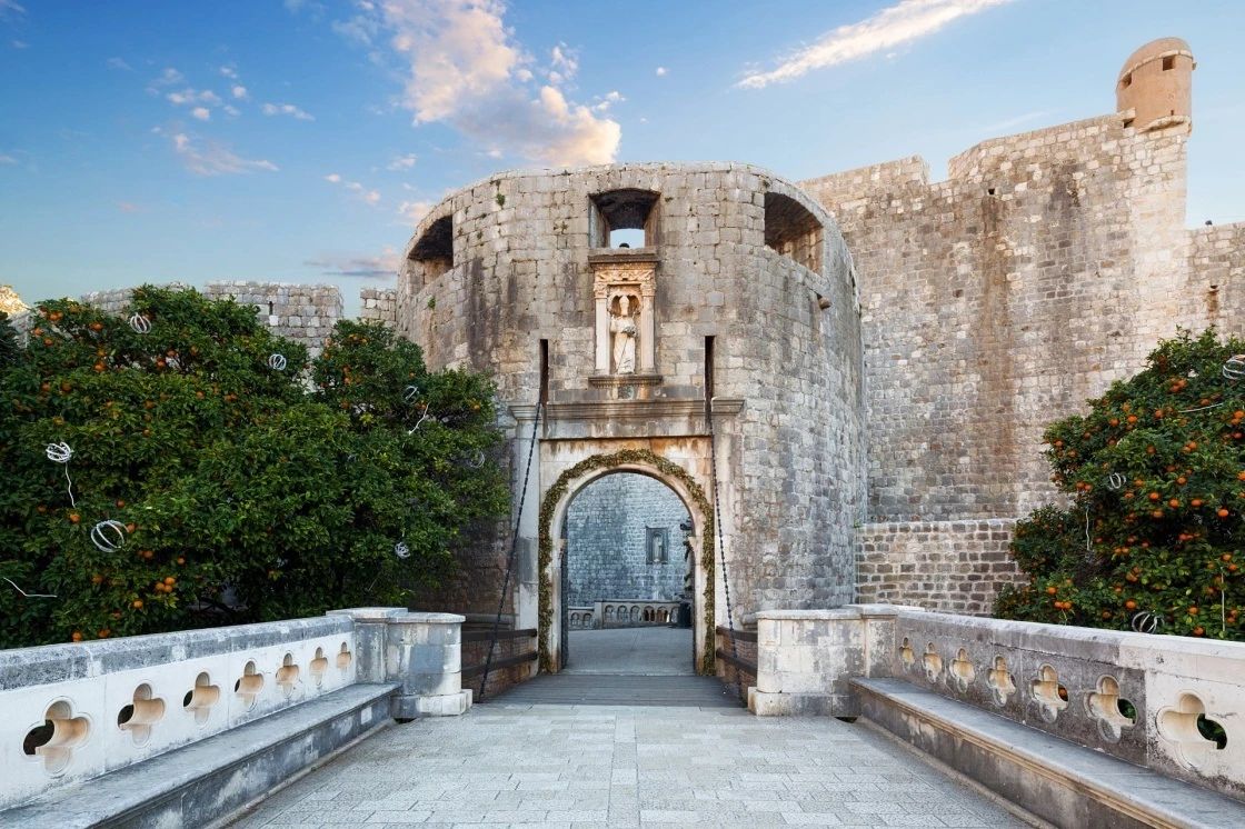 派尔城门位于杜布罗夫尼克古城西侧城墙中部,分内城和外城门两部分。外城建于1537年,城墙呈半圆形,有一道文艺复兴风格的拱门。