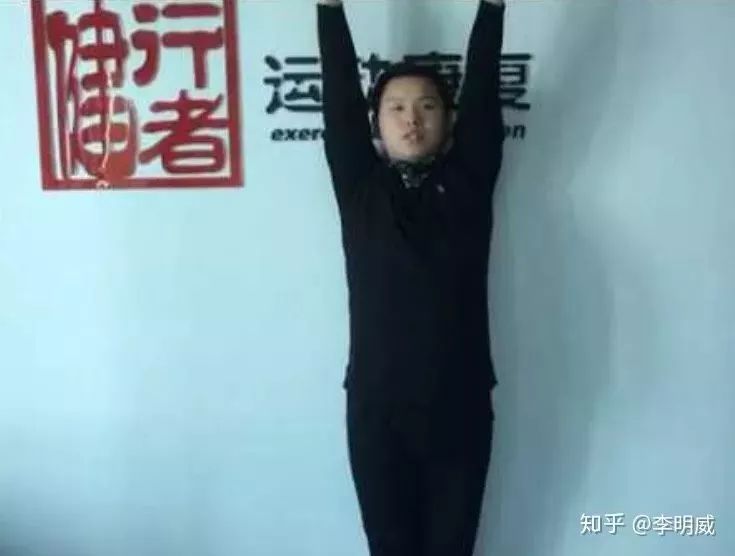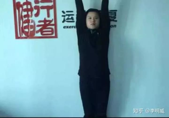 ①一定要找面墙,肩和屁股靠墙,双手上举,掌心相贴,上壁贴近耳朵。