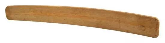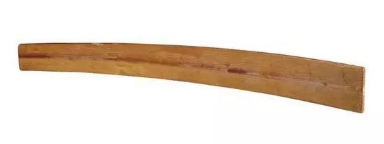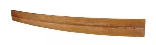 长54.5厘米、上宽5.4厘米、下宽7厘米,为本馆二级藏品。长条片状,上窄下宽两端翘,通体光素无纹。此件象牙笏器形与象牙纹理特点与上一件象牙笏类似。不同之处为:一是这件牙笏四角稍截去一小角,而近似圆角;二是这件牙笏颜色较上一件浅,泛白。