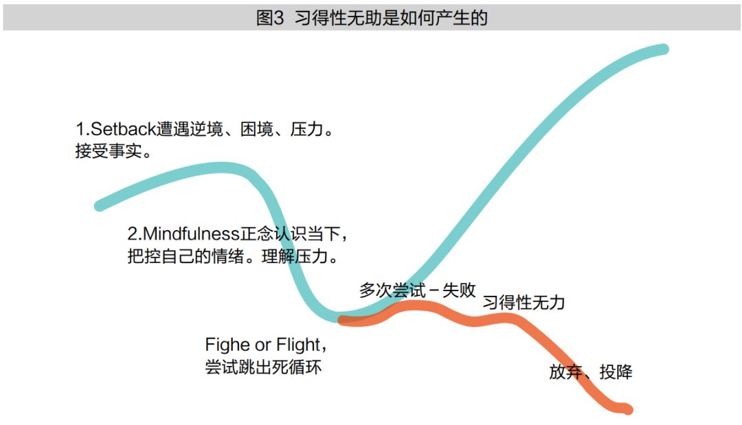 与自我效能感概念相反的是“习得性无助”(Learned Helplessness)。指有机体经历了某种经验、学习后,在情感、认知和行为上表现出消极的特殊的心理状态。例如,面对困难进行了多次尝试、多次都失败,最后深感自己无力解决这个问题,于是放弃、投降(见图3)。