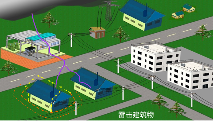 3、雷电波侵入:指由于线路、金属管道等遭受直接雷击或感应雷而产生的雷电波沿线路、金属管道等侵入变电站或建筑物而造成危害。对其防护问题,一般在线路进入建筑物处安装避雷器进行防护。