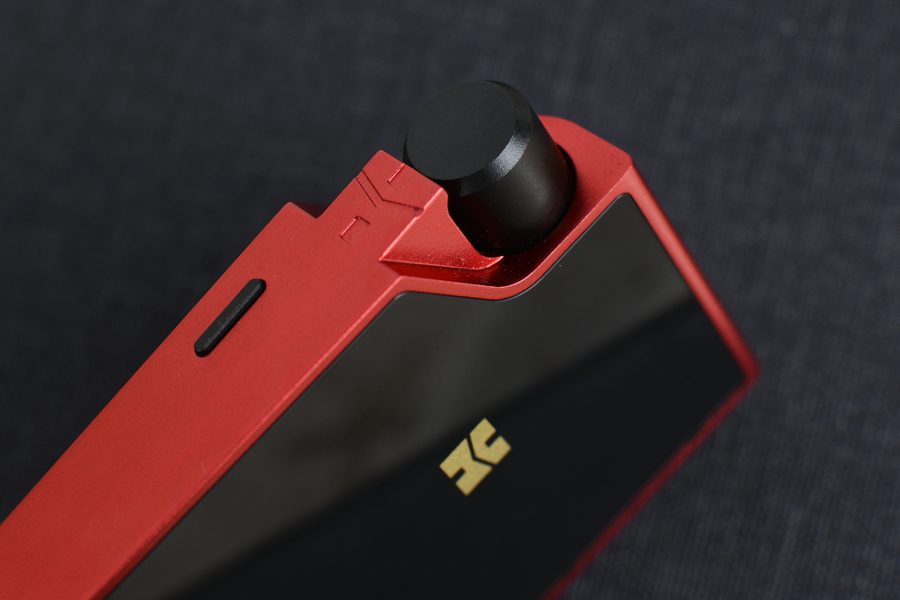 红衣太子音量调节键采用经典的旋钮式设计,在带来良好操作手感的同时,也赋予了播放器更多的灵动性,而黑色的旋钮键也与机身配色更加融洽。另外我们还注意到,红衣太子还将HIFIMAN的品牌logo设计在了按键的下方,也算是一个非常细节的设计亮点了。