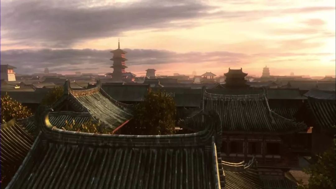 ◀ 假想中的长安城,星罗棋布上百个寺庙