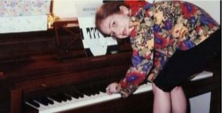 年仅3岁的Lady Gaga虽还不及琴身高,但她却一次次执着地踮着脚尖,试图触摸琴键的边缘。