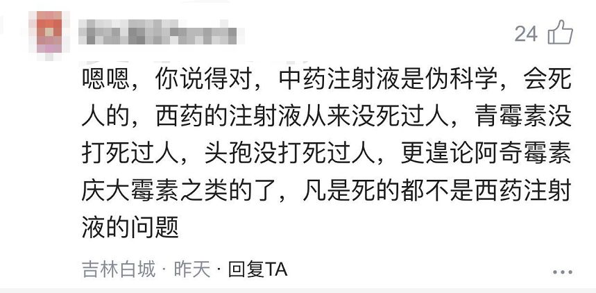 “总盯着中药注射液那点事故,西药就没闹出过人命?”