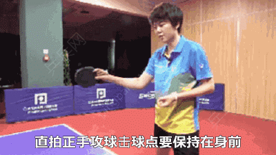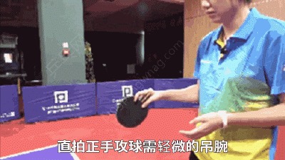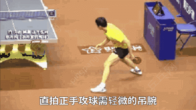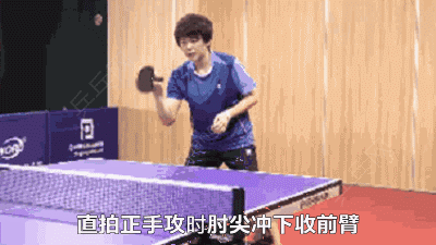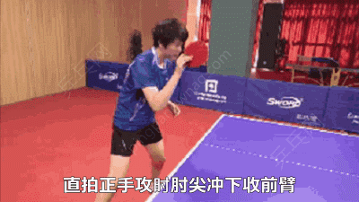 直拍动作跟横板比稍微小一点,直接往前往上。收前臂的力度会大一点,不像横板会把动作拉开一点然后有一些摩擦,直板就是直接收前臂为主,收的比较多一点。