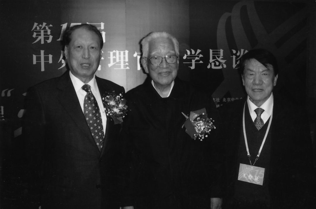 左三至左五分别为《中外管理》创始人杨沛霆、袁老、海尔集团CEO张瑞敏