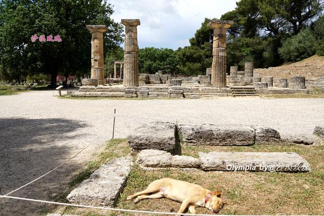 穿过这一大片石柱往里走,是赫拉神庙遗址(Temple of Hera),这里曾供奉了女神赫拉神像,它也是奥林匹亚遗址中现存最为古老的建筑,建于公元前600年左右