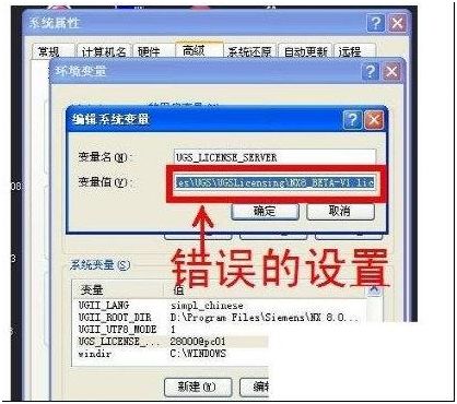 打开环境变量UGS_LICENSE_SERVER的变量值是28000@你的计算机名称