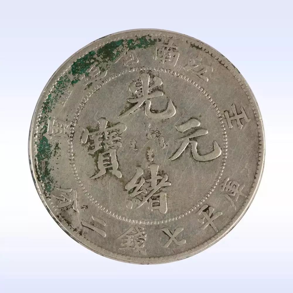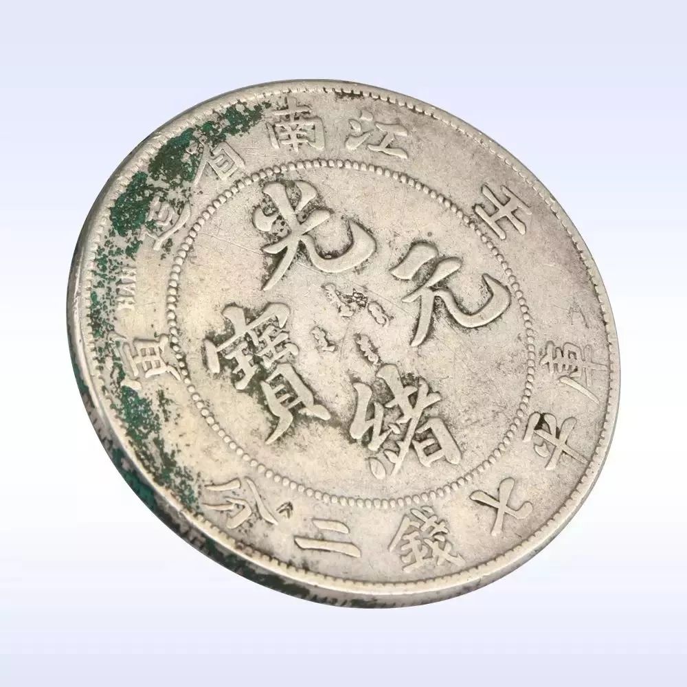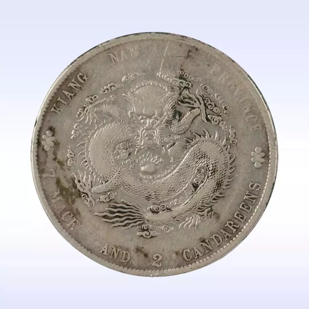 介绍:江南省造壬寅光绪元宝库平七钱二分银币系南京造币厂于光绪二十八年(1902年)铸造,银币正面中央珠圈内镌满汉文“光绪元宝”四字,圈外上端镌“江南省造”,下端镌币重“库平七钱二分”,左右两侧分镌干支纪年“壬寅”二字,“寅”字上侧镌英文“HAH”字样。银币背面中央镌一个新版龙图,上端镌英文“江南省”,下端镌英文币重“库平七钱二分”,左右各镌一个六点花星。
