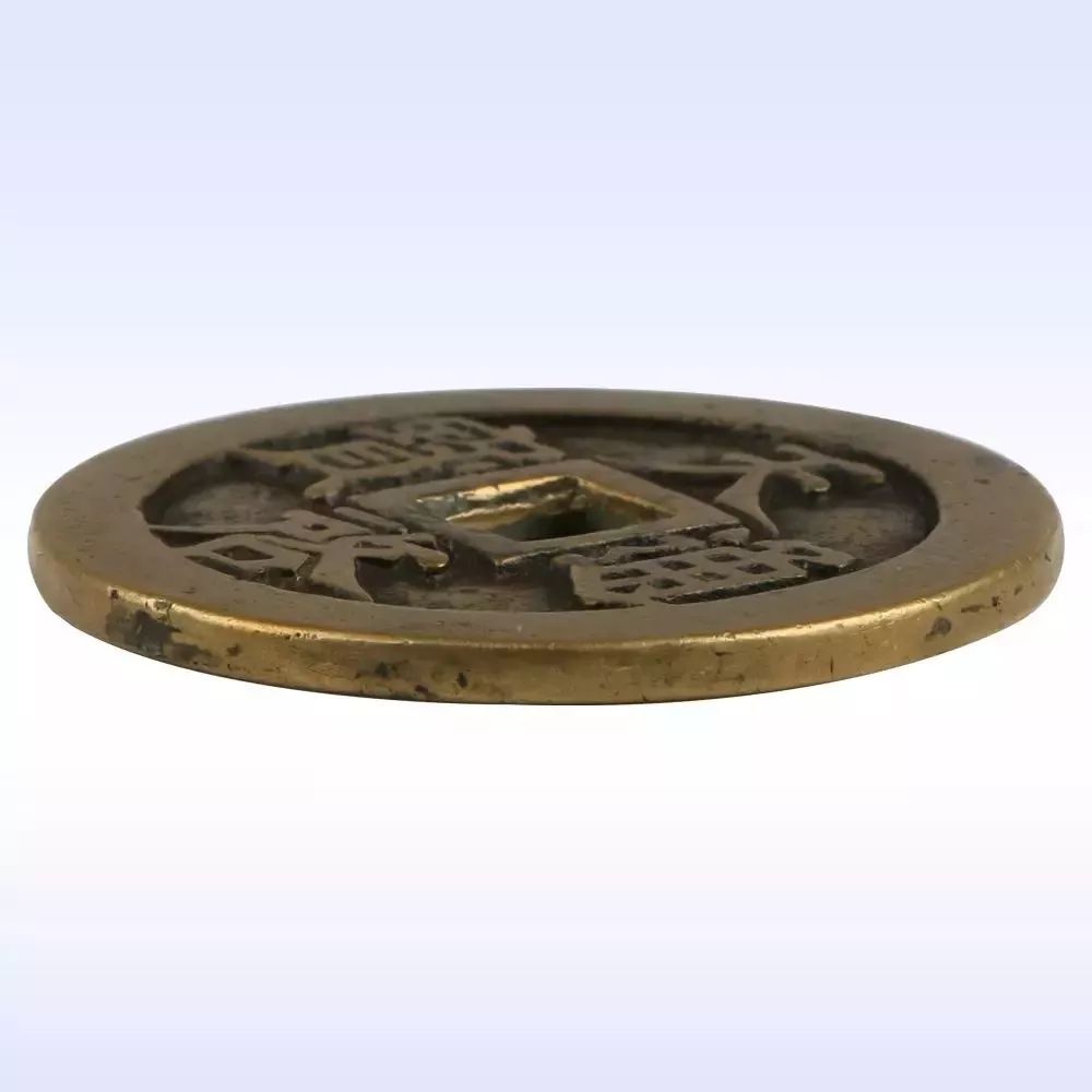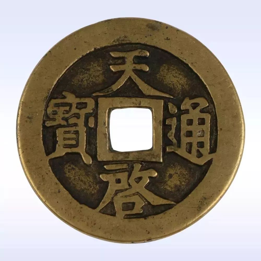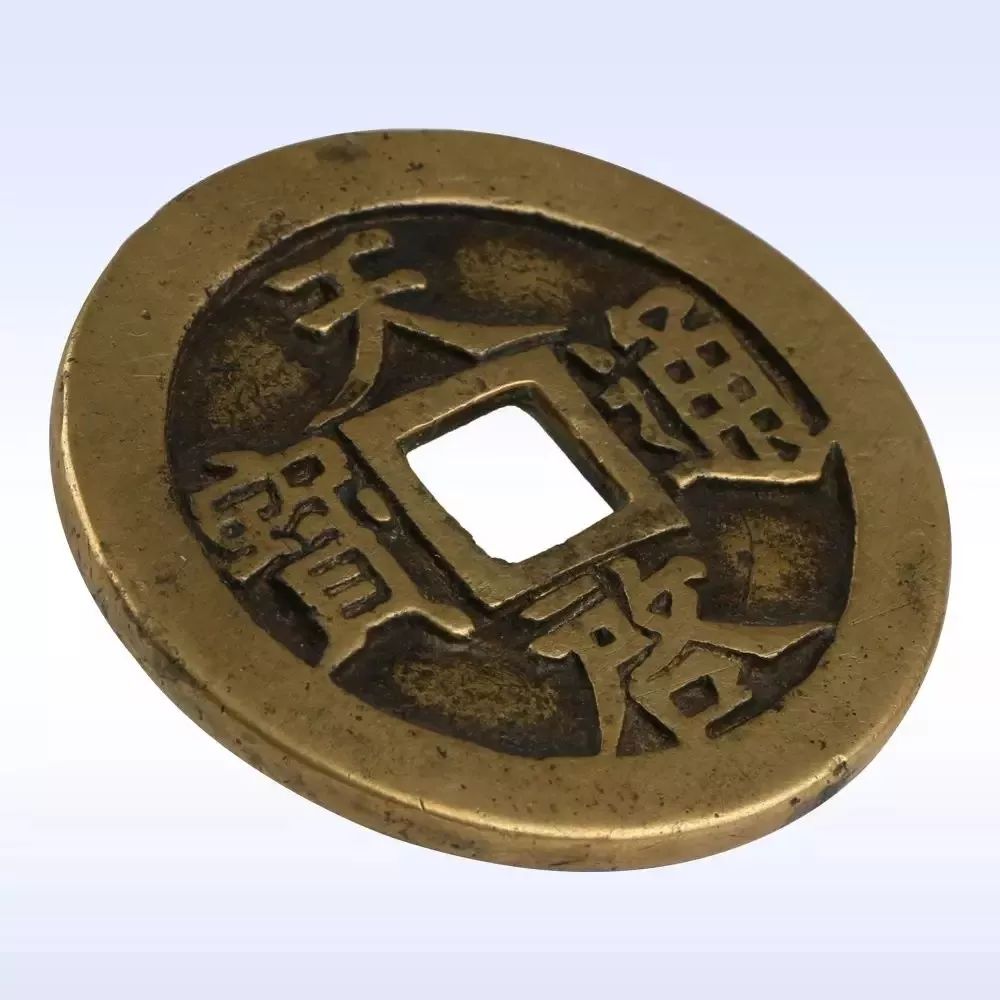 介绍:天启通宝背十一两钱中既有记值也有记重,廓上的“十”字意味该大钱记值十文钱,右边竖读“一两”二字表示该铜钱重量为一两,合起来就是该钱币“折十重一两”。传世黄亮、包浆自然、美品。