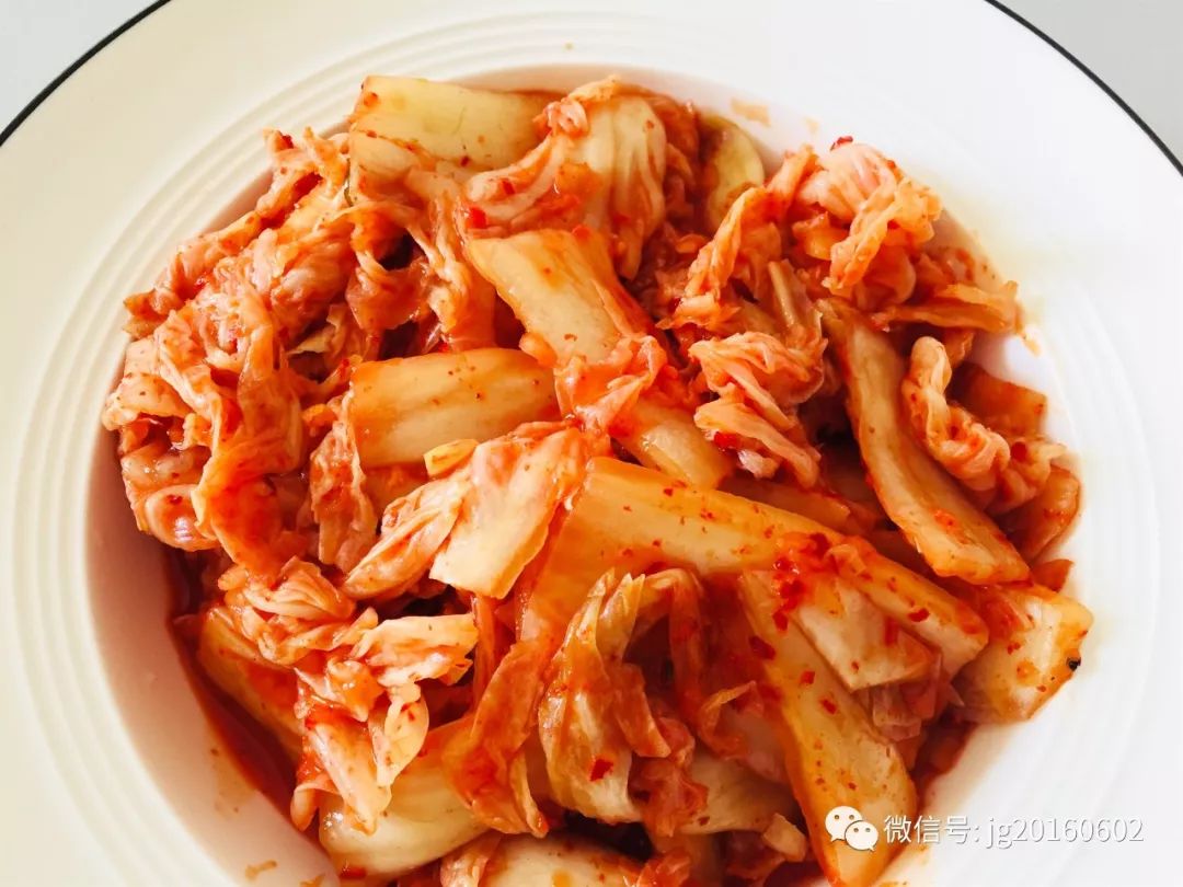 购买了已经腌制好的辣白菜切片或者切丝均可,切好后待用;