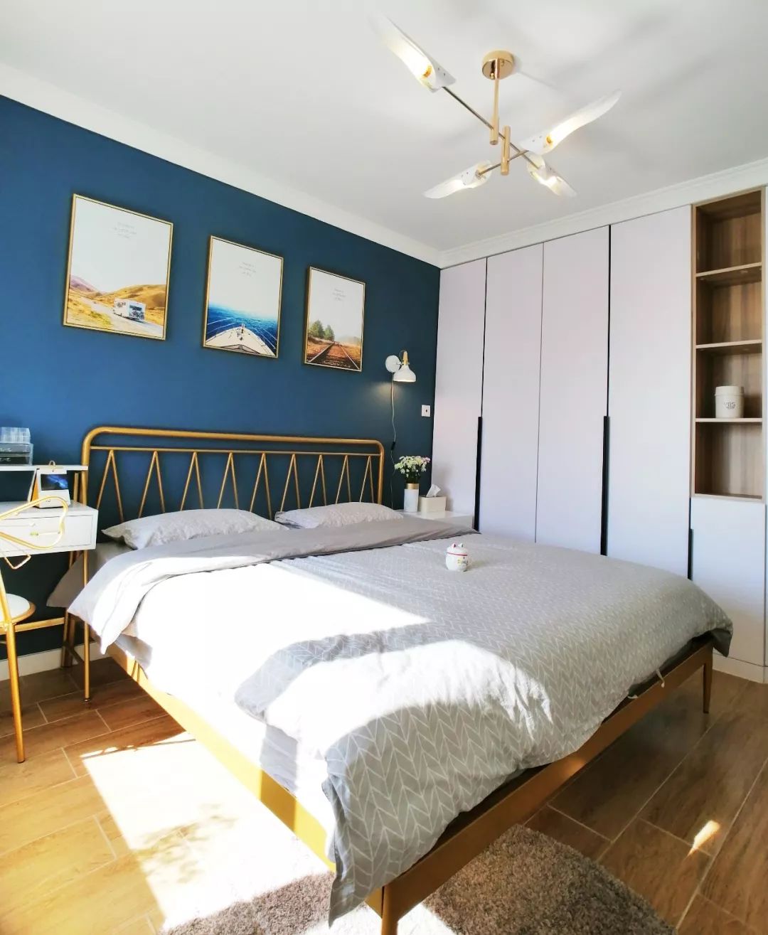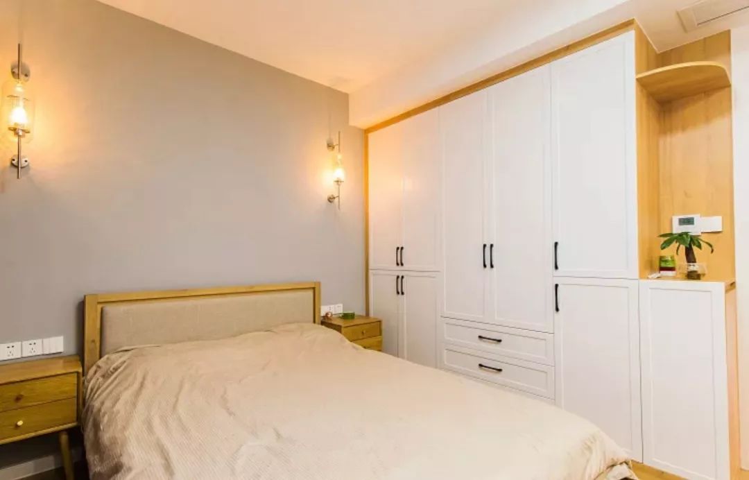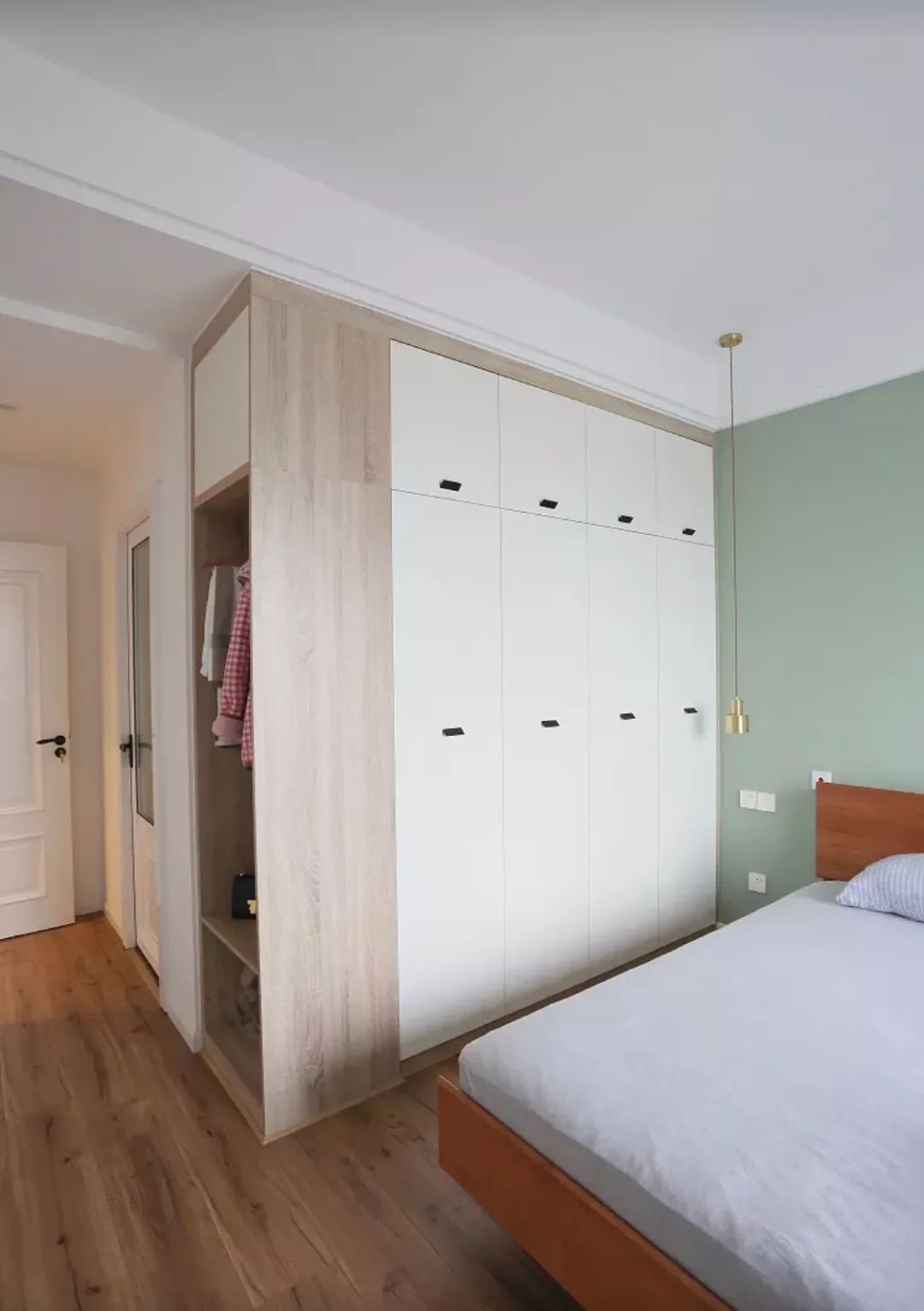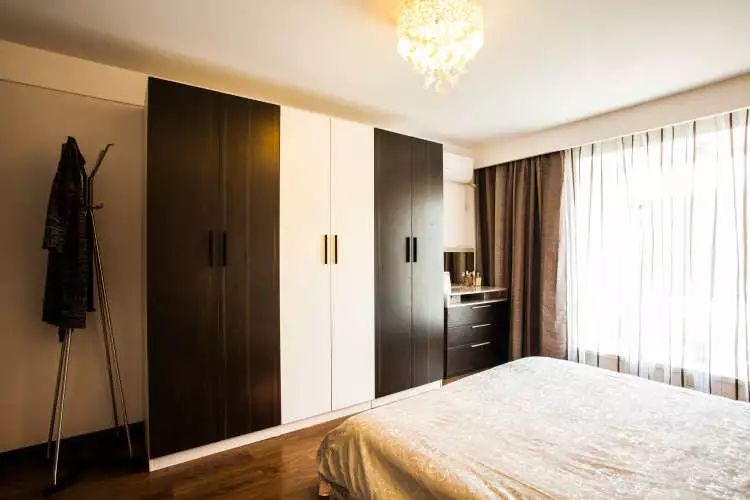衣柜作为卧室里最大件的家具之一,在它大尺寸的面积里往往意味着会抢占更大的视线,在多数人家的装修中,衣柜选择纯色的话也算是中规中矩的设计,不过搭配出来的设计效果难免会显得有点太素太单调,若能在衣柜设计的时候搭配点撞色进去,那么整体衣柜会显得更加有层次感,更加美观自然。