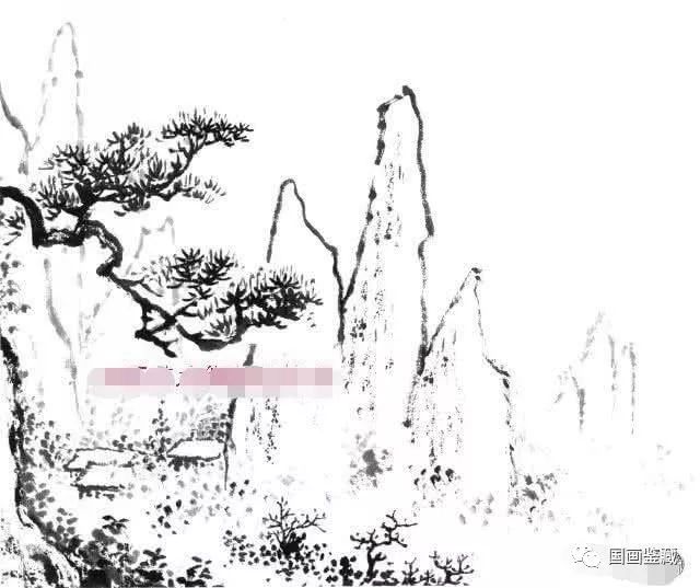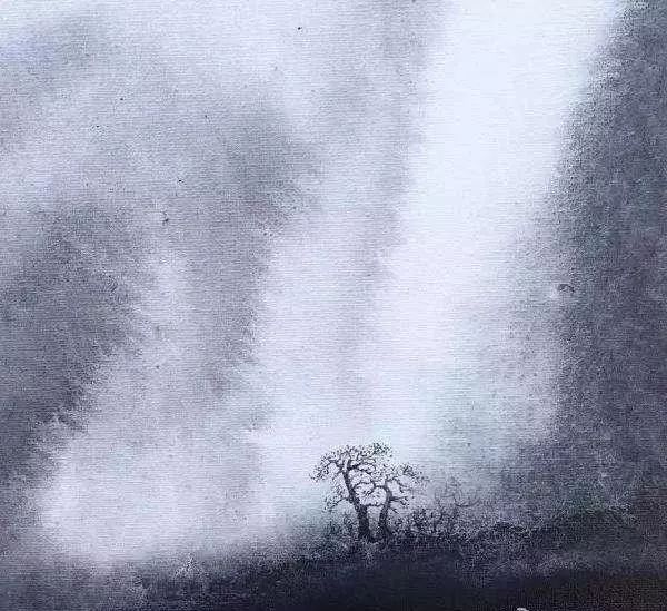 雨景构图。描写雨景可采用米点法。画法宜先淡后浓,着重刻画雨中山水朦胧气氛,故用笔要灵活,勾云要简练、协调,渐远渐淡、气势连贯,以使山云环绕前后山峰。山峰脉络应蜿蜒连绵。山峰之间应多留空间,以增加云雾弥漫之气氛。