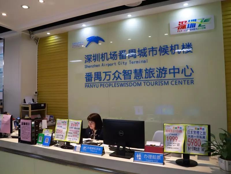 在深圳机场番禺城市候机楼,旅客还可以直接办理深圳宝安国际机场的登机牌,享受代购机票、代办签注、代订酒店等一站式旅游服务。