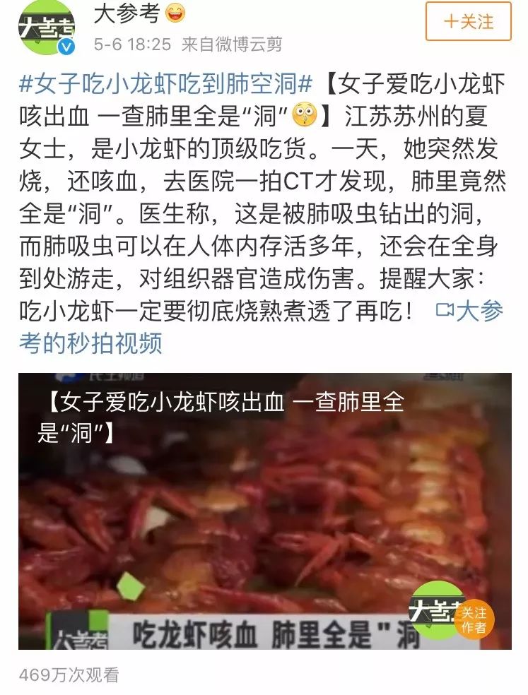 这不,最近别棹姐看到一则新闻,说是江苏一女士吃完小龙虾之后,出现发烧、咳血等症状。结果去医院一拍CT,肺里竟然全是洞。