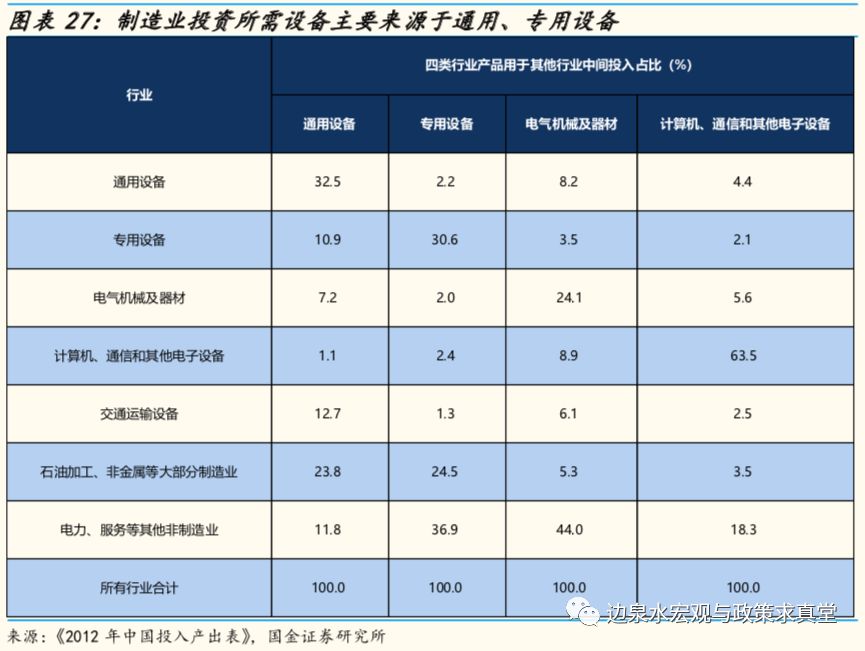 制造业投资中所需的设备主要来自于通用和专业设备行业,通用和专用设备制造业增加值是制造业投资的领先指标,大约领先12个月的时间。制造业投资往往需要购置设备。设备一般包括工程机械、化工机械、油气装备、电机、计算机等,主要来自于通用设备、专用设备、电气机械器材、计算机通讯电子设备四个行业。从2015年投入产出表可以发现,除这四类行业以外,大部分制造业对通用设备、专用设备制造业生产的设备的需求较大,而电器机械及器材、计算机通信电子等行业设备的需求主要来自于自身行业及非制造业。由此可见,追踪制造业投资的较好行业是通用设备和专用设备。制造业投资中所需的通用和专用设备,特别是产业结构升级过程中需要的设备,生产周期都较长,需要提前预订,从预订到最后交货往往需要很长时间,1-2年都是比较正常的。以空分设备为例,冶金等行业对空分设备需求较大,然而空分设备生产周期大约为1-2年左右的时间。由此,可以通过观察通用、专用设备的生产状况追踪制造业设备需求。从数据上看,通用、专用设备增加值累计同比大约领先制造业投资累计同比12个月的时间。