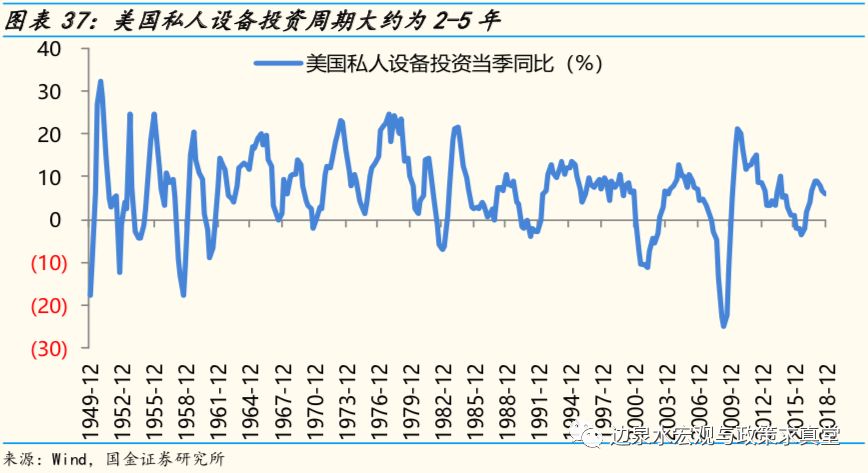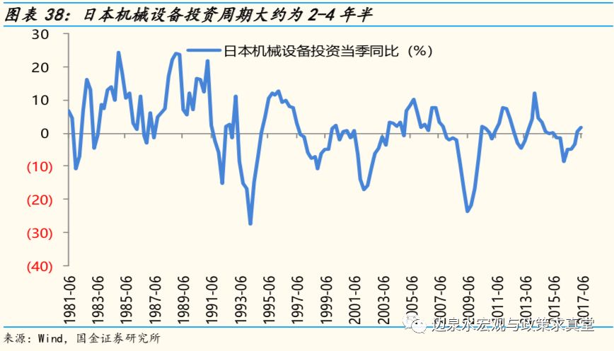 美国设备投资周期大约为2-5年,日本设备投资周期大约为2-4年半年,与我国的3-4年相差不多。1949年以来,美国共计经历了17轮设备投资周期,分别为1950.03-1952.12(3年)、1953.03-1954.12(2年)、1955.03-1958.12(4年)、1959.03-1961.09(2年3个季度)、1961.12-1963.06(1年3季度)、1963.09-1967.09(4年1个季度)、1968.12-1970.12(2年1个季度)、1971.03-1975.09(4年3个季度)、1975.12-1980.09(5年)、1980.12-1982.12(2年1个季度)、1983.03-1987.12(5年)、1988.03-1991.09(3年3个季度)、1991.12-1996.03(4年半)、1996.06-2001.12(5年半)、2002.03-2009.06(7年半)、2009.09-2013.09(4年半)、2013.12-2016.09(3年)。除了2002.03-2009.06设备投资周期长达7年半时间外,其他设备周期主要集中于为2-5年时间。1981年以来,日本共计经历9轮设备投资周期,分别为1981.12-1983.03(1年半)、1983.06-1986.12(3年半)、1987.03-1989.09(2年3个季度)、1989.12-1994.03(4年半)、1994.06-1998.12(4年半)、1999.03-2002.06(3年半)、2002.09-2009.06(7年1个季度)、2009.09-2013.03(4年)、2013.06-2016.03(2年3个季度)。除了2002.09-2009.06以外,日本设备周期大约经历2-4年半时间。由此可见,美国设备投资周期大约为2-5年,日本设备投资周期大约为2-4年半年,与我国的3-4年相差不多。