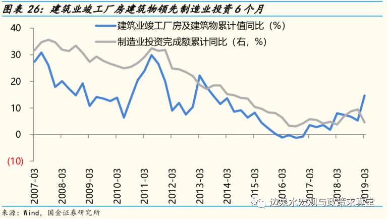 建筑业竣工厂房建筑物累计同比领先制造业投资累计同比6个月的时间。厂房的建设工作并非由制造业企业完成,而是交由建筑业企业实施的,因此可以通过观察建筑业厂房的产值跟踪厂房建设进度,进而跟踪制造业投资状况。从历史经验来看,建筑业竣工厂房建筑物累计同比大约制造业投资累计同比6个月的时间。两者之间的时间差可能来自于先建设、后付款的模式,即建筑业企业建设到一定程度以后,制造业企业再付款。