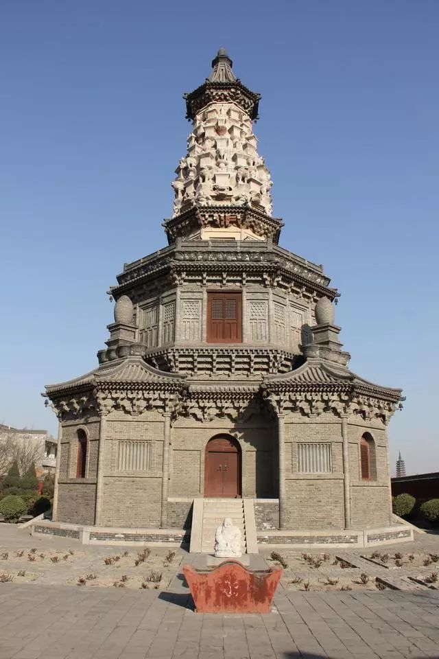 3、广惠寺华塔:是中国砖塔中造型最为特异,装饰最为富丽的塔。始建于唐贞观年间(627年——649年)。坐落在正定县城内燕赵南大街东侧的广惠路上,由主塔和附属小塔构成,全用砖砌。主塔底层四隅各附建一座扇六角形亭状小塔,小塔环抱主塔,高低错落,主次相依,精巧华丽,壮观秀逸。