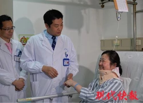 上海长征医院脊柱三科副主任、南京分院副院长、骨科主任杨立利教授说,我们人体颈椎如果是正常的,那么会有一定的弯曲弧度。张女士入院检查发现,颈椎曲度变直,颈椎间盘突出,已经压迫神经等部位。经过精心手术,术后患者右上肢疼痛、麻木、无力症状明显缓解。术后第 2 天,患者即可在颈托保护下床活动。术后 2 月,患者即恢复正常生活,重现笑颜。