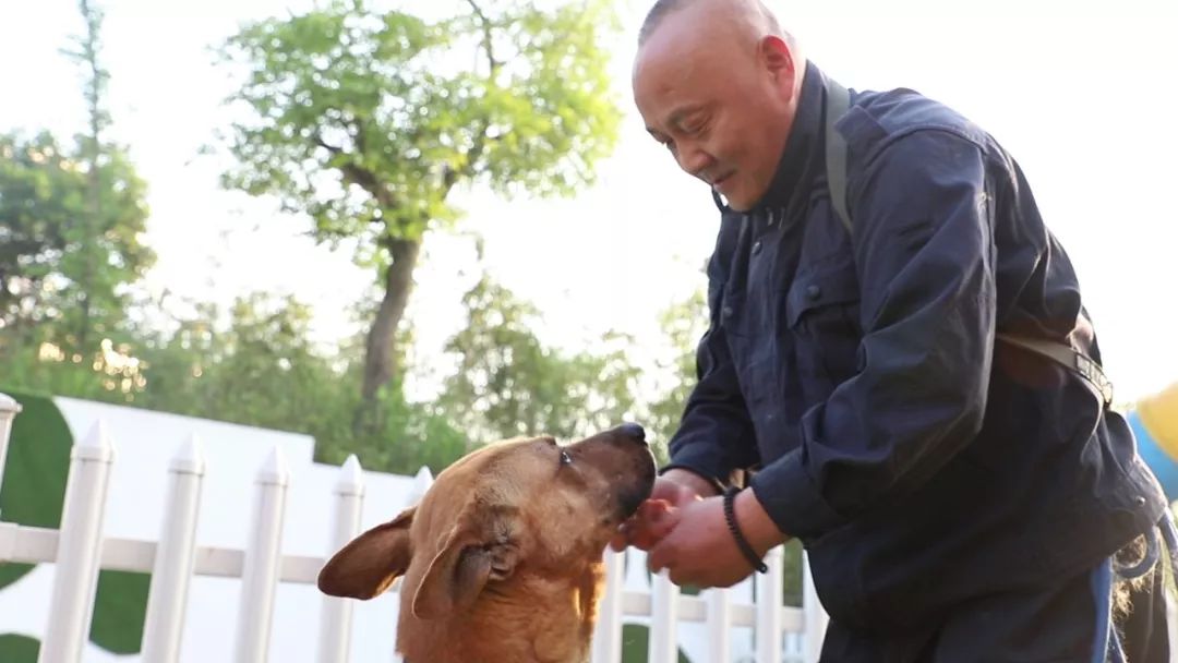 每天早晨5点半,老白都会准时来到养老院,检查每一条警犬的身体状况,带它们散步、训练、游戏。下个指令、飞个背,让他们感觉和年轻时一样。