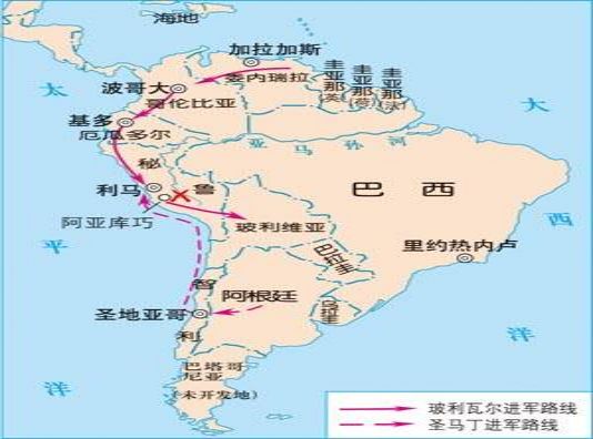 ▲拉丁美洲独立运动南美战场示意图