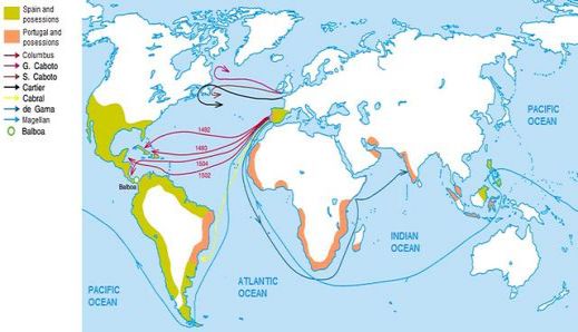 1492年,意大利航海家哥伦布在西班牙王室的资助下意外“发现”了美洲大陆。后来,葡萄牙航海家达迦马在葡萄牙王室的资助下沿着迪亚士开发的路线,绕过了好望角,开辟了从欧洲到印度的航线。1521年,麦哲伦在西班牙王室的资助下,开启了人类历史上第一次环球航行。