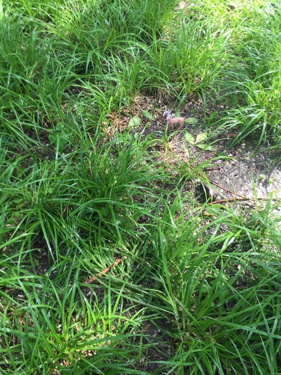 可以看出,我们选取的这片草丛有很明显的光影变化。这时你只需要把模型鹿放置在其中的一个高光区,调节好相机曝光,就可以营造出清晨一束阳光打进热带雨林的效果了。