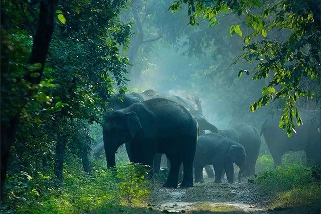 最终拍摄完成的照片营造了幽静无人的氛围,给观者一种小鹿在热带雨林中行走的错觉: