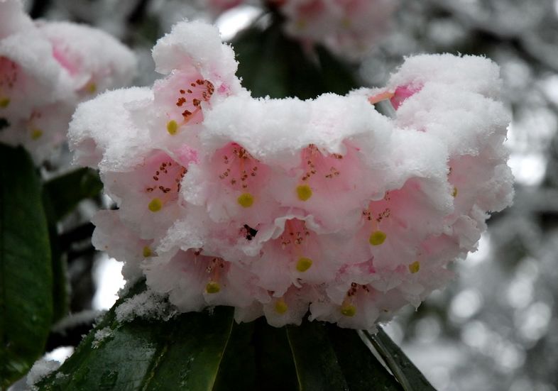 海螺沟的杜鹃种类多达68种,占全国杜鹃种类的8.6%和全世界杜鹃种类的10.4%。素有“人间四月天,海螺看杜鹃”的美誉。由于杜鹃分布较广,不同的名族对它也有不同的称呼如:彝族称索玛花,藏族称格桑花、朝鲜族称金达莱、江西一带称映山红、咱们当地又称羊角花,南亚山国---尼泊尔更是把杜鹃列为国花,在他们的国徽上就有一颗盛开的杜鹃花。
