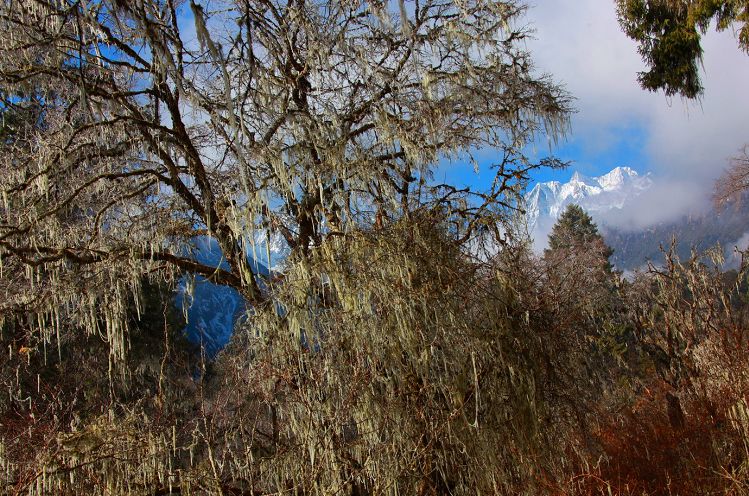 海螺沟的原始森林内住着一位“空气质量家”---松萝,它是一种附生在一些大的乔木之上的菌物,被科学家们称为“树挂”,山里的人们又称为“山挂面”。