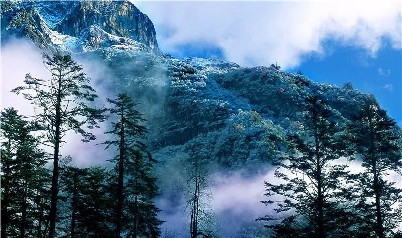 从海拔1000的大渡河畔到海拔7556的贡嘎之巅,从虬曲苍劲的杜鹃树到高耸入云的麦吊杉,从常绿落叶林到高山暗针叶林,70平方公里的原始森林,7个完整的植被带谱。在这样的“垂直花园”,“天然氧吧”中徜徉,才知道什么是“青山不改,绿水长流”。