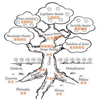 注:上图为被压迫者剧场之树。因“被压迫者剧场”一词些许敏感,我们统一用“论坛剧场”代替。另,本文少量用词经过调整,以适应大陆地区的政治文化。