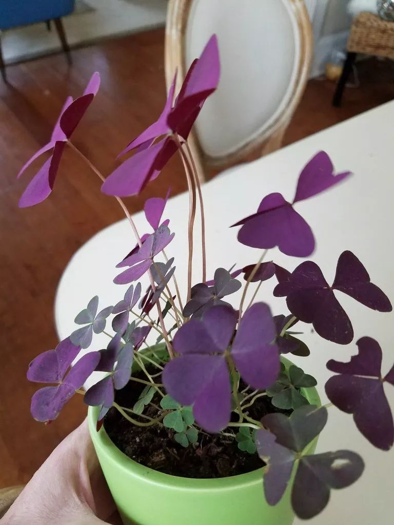 紫叶酢浆草是很常见的观叶观花型植物,植株小巧,适合盆栽养护,养在室内光线明亮或有较多散射光的地方都能生长良好,它喜欢温暖湿润的环境,盆土要保持良好排水性,避免土壤积水,冬季养护温度保持在5度以上即可。
