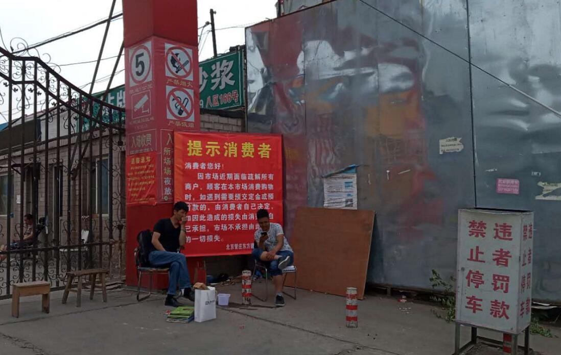 5月17日,记者发现位于朝阳路管庄路南侧的建材城的路口已经放上了铁栅栏,市场大门口贴着醒目的退租通知,上面写道:因地方政府有关政策,市场面临疏解,即日起清市场所有商户办理有关退租手续,为了避免集中拥挤,先大厅后大棚并按摊位号顺序陆续到市场办公室办理。