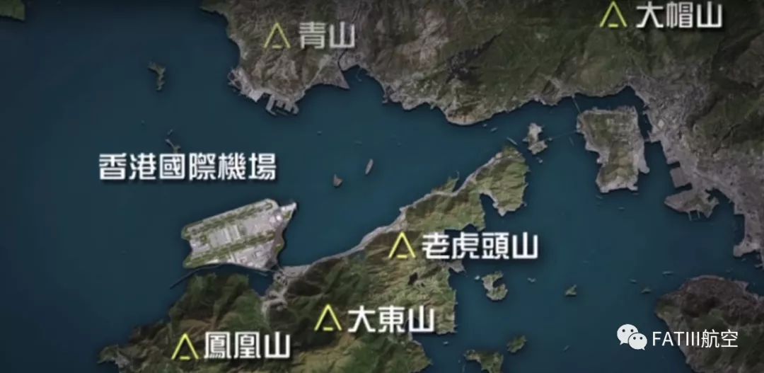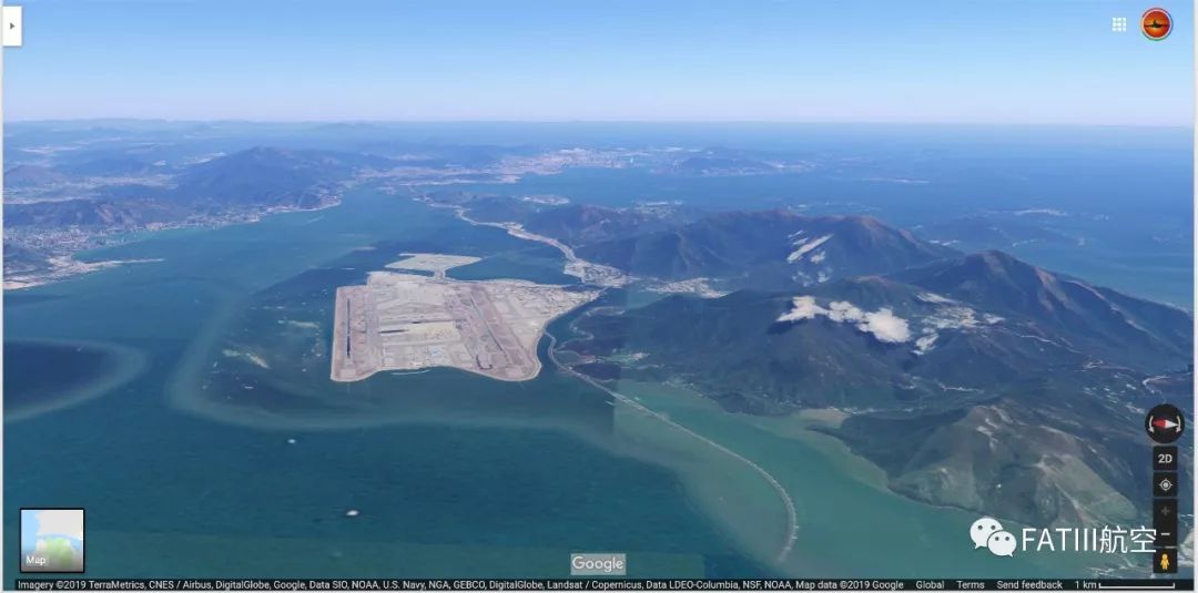 用谷歌地图的3D 模式,可以看到 HKG 周围有不少山地