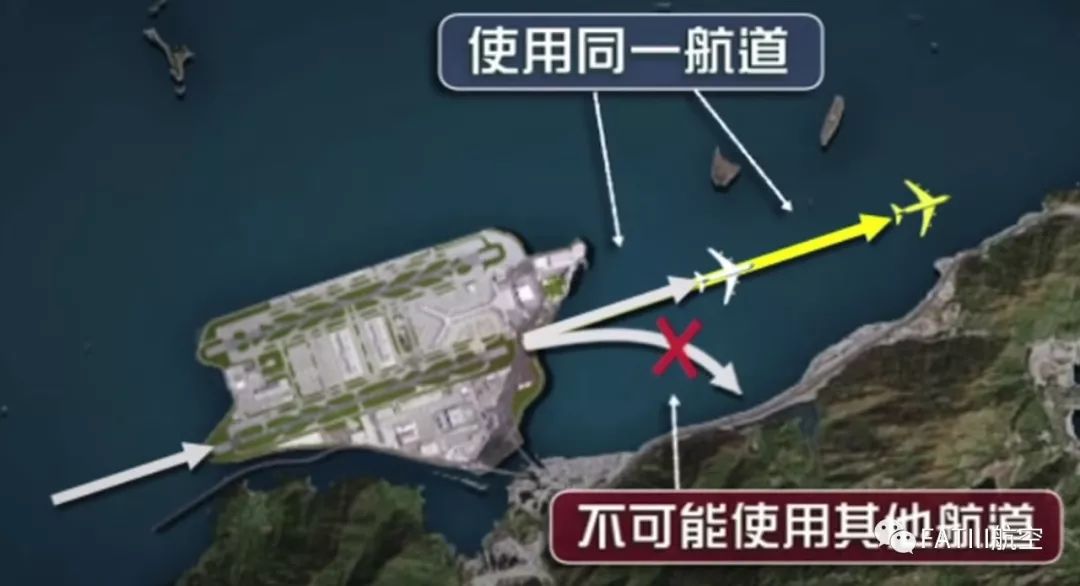 明知有更好的模式却依然沿用,当然有不得已的苦衷,那就是安全。香港国际机场周边都有影响飞机航线的山地,一定程度上限制了飞机在复飞和起飞时所能够使用的航道。如果香港国际机场两条跑道采用独立运行模式,那么当其中一条跑道同时出现起飞和复飞的情况,将可能造成飞机在空中出现过于接近的情况,从而增加空中相撞的风险。