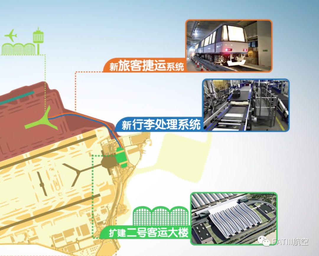 完整的”三跑道系统“,包括全长3.8公里的第三条跑道、与之配套的滑行道系统、停机坪、塔台及丫形新跑道客运廊、扩建行李处理系统、延伸旅客输送系统并对现有的二号客运大楼进行改扩建等项目。