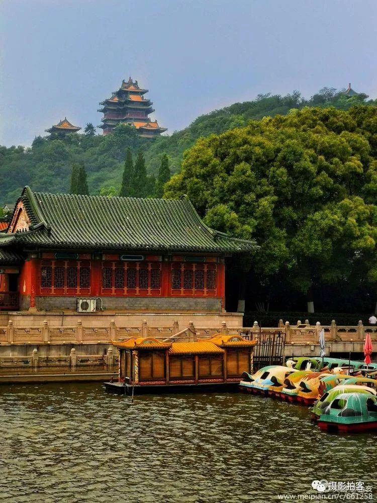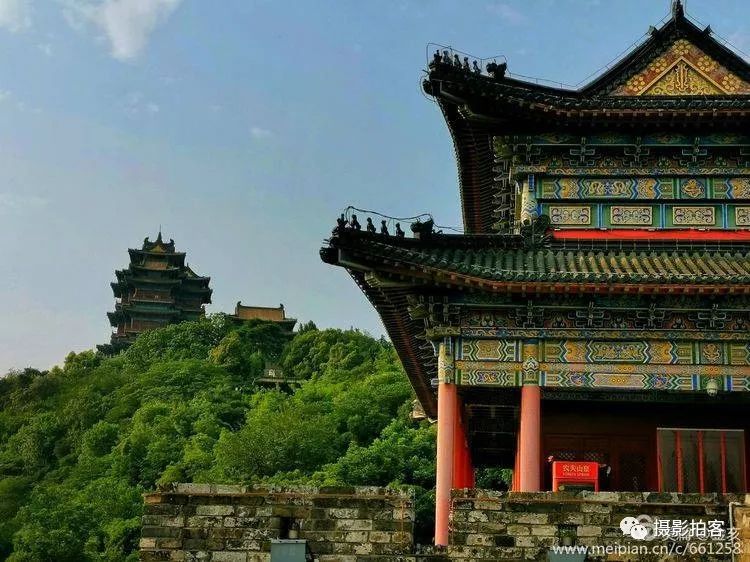 阅江楼虽不及滕王阁高,但远比它华丽,所以显得气派非凡,富有皇族气息。顶上彩绘数件,美不胜收。从底部仰望过去,仿佛置身于一幅画卷中。