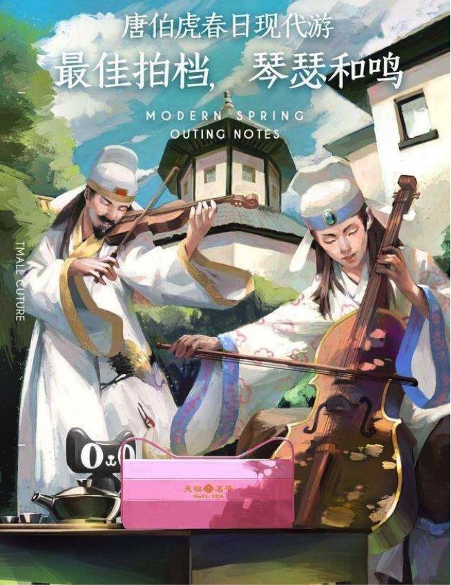 最近,天猫新文创与苏州博物馆跨界合作打造了春茶,二次元的海报,让唐伯虎、祝枝山、文征明、徐祯卿这四大才子“大玩穿越”,用现代人的交流方式和人们以茶会友,重新演绎中国茶文化。很契合住年轻人的喜好,也催生出了一批新式爆款中国茶。