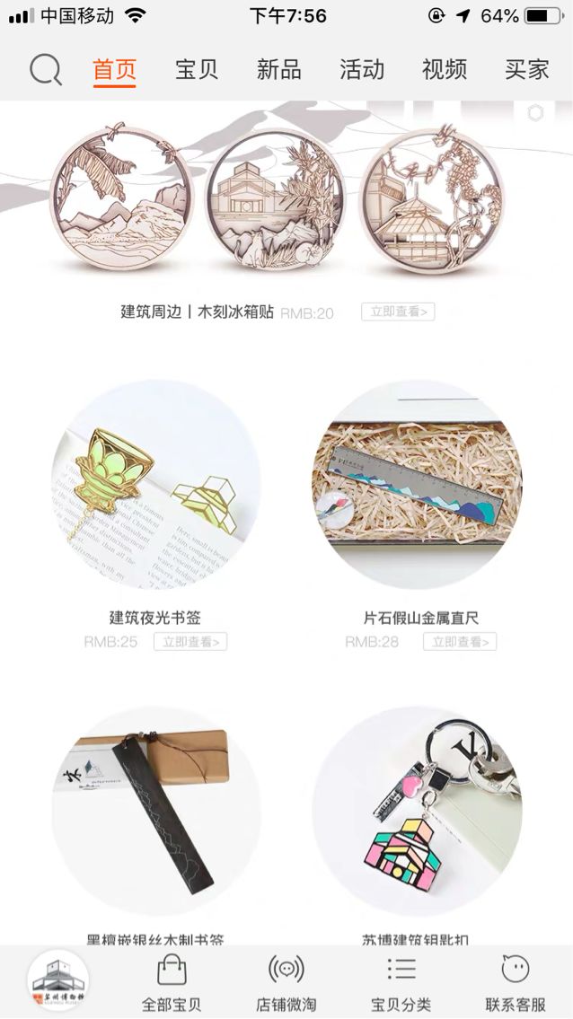 苏州博物馆的官方网店以“在博物馆贩卖美&时光”为主题,文创产品分为梅影书屋、吴门四家、烟云四合、镇馆之宝四大类,拥有15万的粉丝。