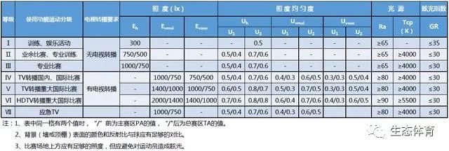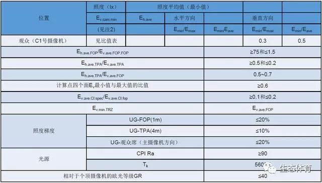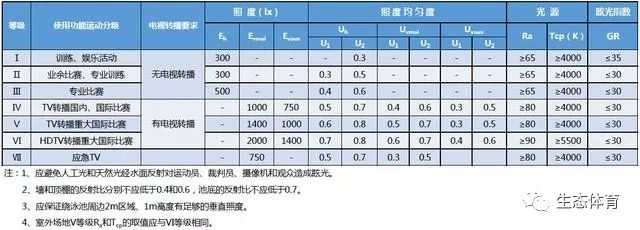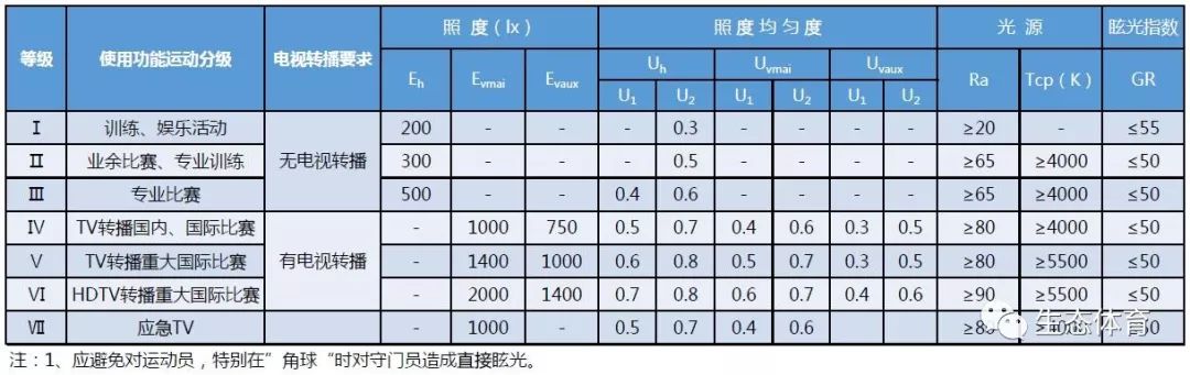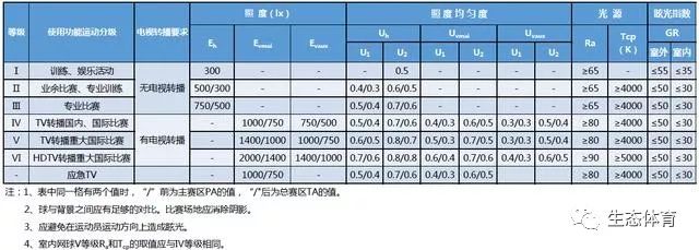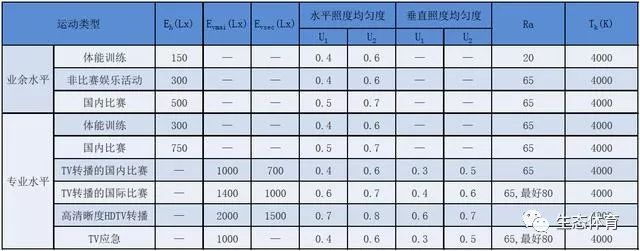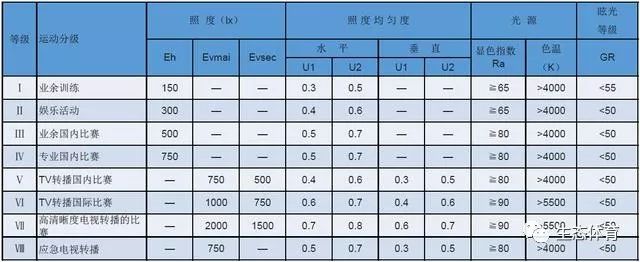 三、体育场馆的照明标准