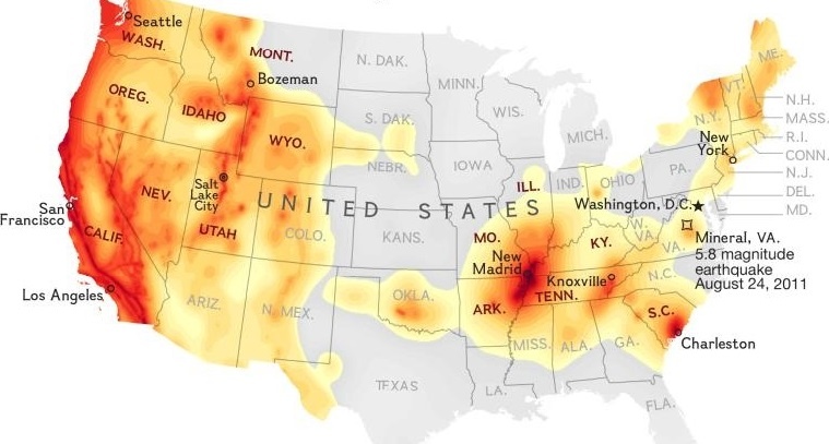最近一段时间,沉寂133年的美国东海岸地下断层有逐渐苏醒的迹象。2017年至2018年间,南卡罗来纳州佩奇兰市6个月内连续发生3次地震。2018年9月到11月,南卡罗来纳州遭遇了一连串小地震袭击,甚至一天之内就发生两起地震。2019年詹金斯维尔附近发生一次2.5级地震。