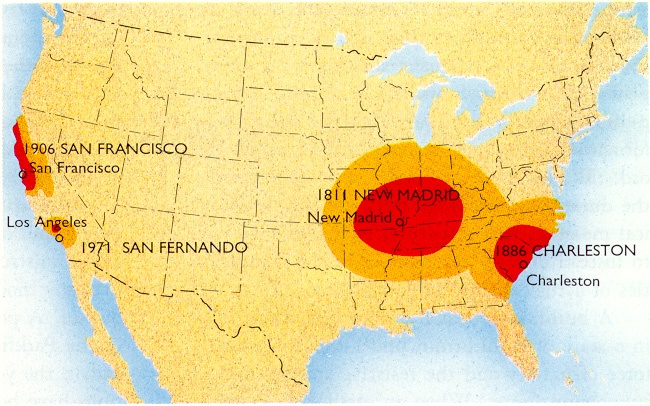 令人奇怪的是,查尔斯顿地震发生地并不在板块交界处,当地历史上也极少发生板块构造运动。作为“板内地震”的典型,查尔斯顿大地震一直是地震学家研究的重点。普遍认为该地区的地震活动与北美板块深处的远古断层有关。
