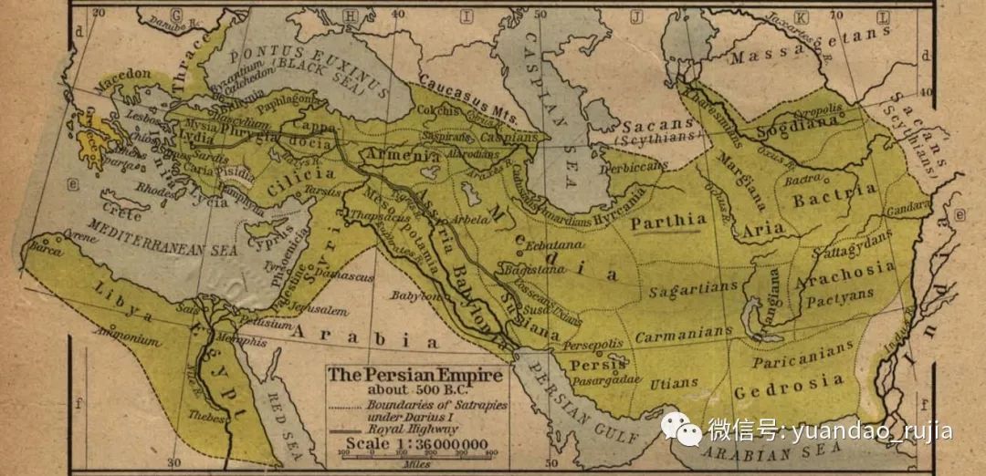 古波斯《贝希斯敦碑铭》用古波斯语、埃兰语和阿卡德语配以浮雕的形式向我们讲述了大流士一世及其继任者薛西斯已经信奉了琐罗亚斯德教。公元前550年,居鲁士二世建立了波斯帝国,大流士一世(前522-前486年)将版图扩展为世界上第一个地跨亚、非、欧三大洲的庞大帝国。