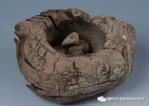 第十个木火坛出土于M31,此件木质火坛以原木截断后加工而成,腐朽程度较大。木火坛顶面修整成平面,长约25cm,宽18cm(高不详),中部掏挖直径约14cm的圆形袋状内膛,内盛有直径2.5-5cm不等的卵石数枚(因木火坛朽碎,无法得出准确数字)。