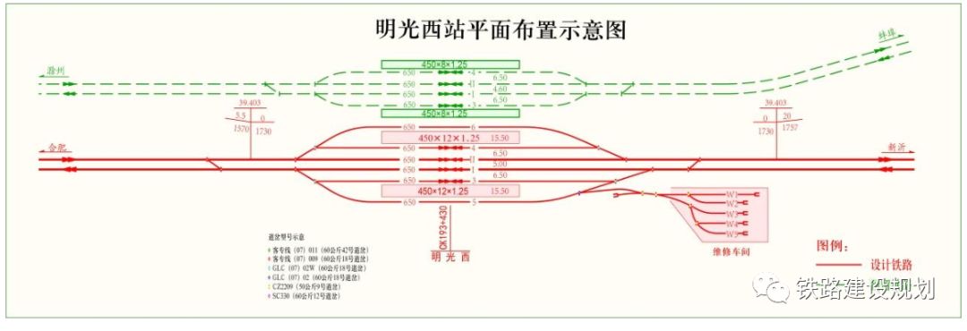 明光西站平面布置示意图▼