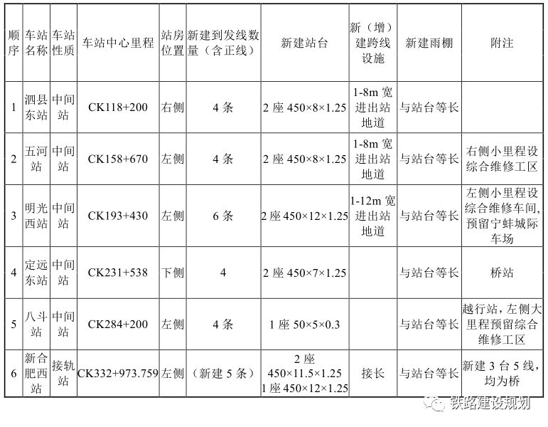 合新高铁安徽段车站设置一览表▼