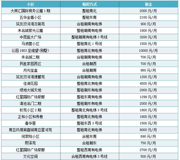 大队长根据不同的区域,选择了几个代表性的小区,以2019年5月最新租房消息为准,给大家送上一些租房价格参考。一起来看看吧~